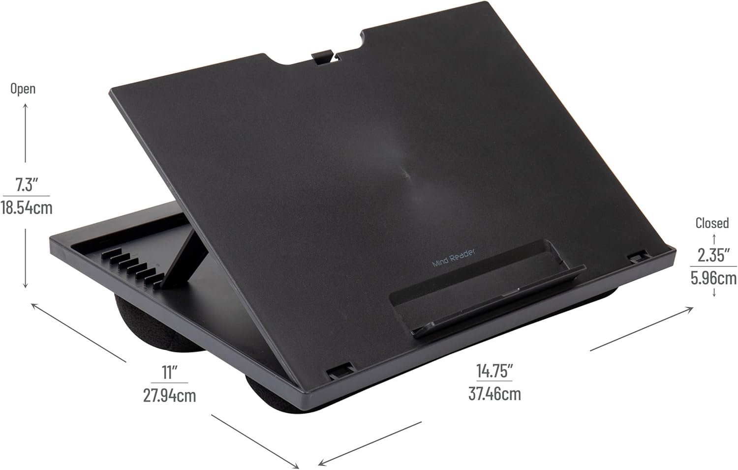 Experience ultimate comfort and flexibility with the Mind Reader Lap Desk Laptop Stand, perfect for home, dorm, or travel. This ergonomic stand by Mind Reader offers 8 adjustable height settings and double bolster pillows, ensuring strain-free use and superior comfort for long sessions. Lightweight and portable with a built-in handle, it features a secure bottom lip to keep your device in place. Make your work or study sessions more enjoyable with this versatile, collapsible lap desk.
